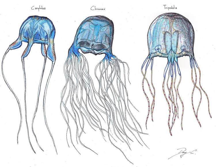 These cnidae accelerate at 5.4 million times the force of gravity when fired! To put that in perspective, that's 4.4 million times quicker than the new Tesla Roadster and 500 000 times quicker than the blink of an eye. The pressure that a box jelly sting can exert on impact with its prey is 7.7 gigapascals - that's about 350 times the pressure of an armour-piercing rifle bullet striking a hard target. Of course, these cnidae are very small, so there is not enough force for us to feel that pressure, but it is enough to pierce the skin of most animals.