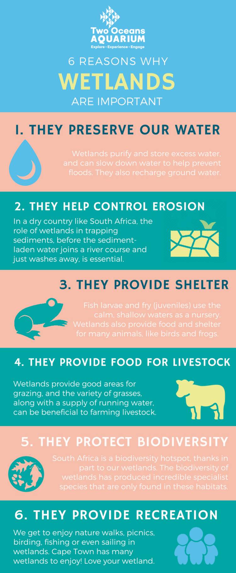 Zeekoevlei, Rietvlei Wetland Reserve and Rondevlei Nature Reserve are all examples of wetlands in Cape Town that people are able to visit and where they can enjoy nature walks, picnics, birding, fishing or even sailing. As more people flock to cities, these recreational spaces in nature become even more valuable.