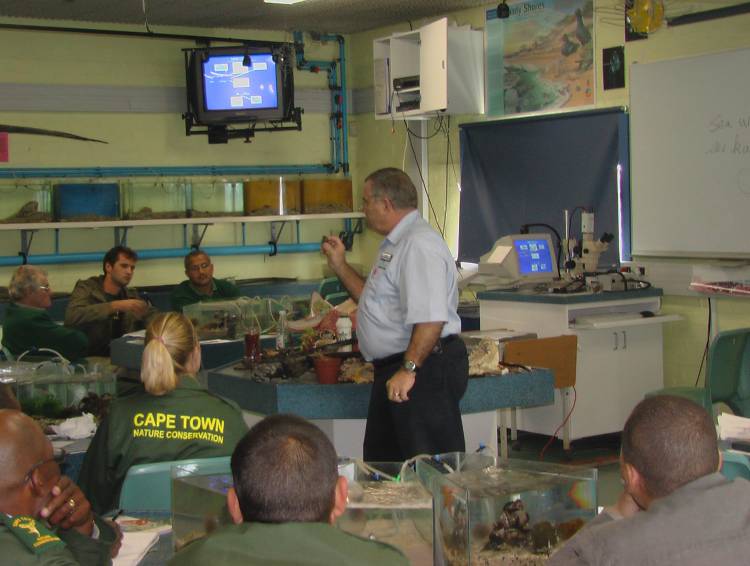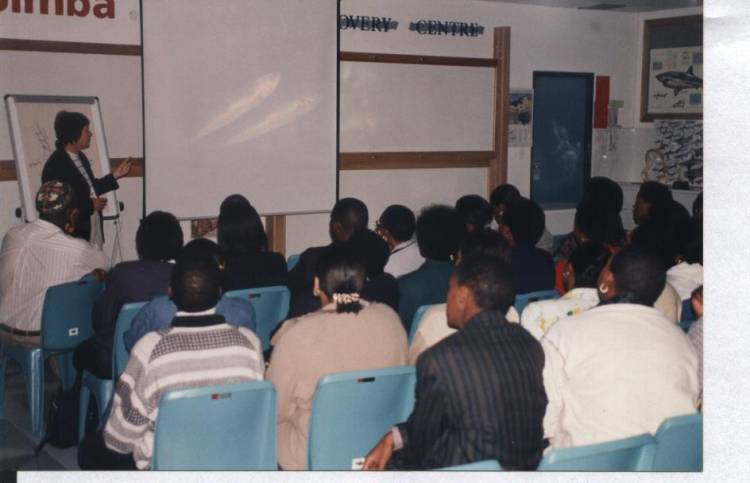 Early in the Aquarium’s life, the Environmental Education Trust recognised the importance of training the teachers as well as students, and several teachers’ workshops were arranged with various partners including the Primary Science Programme (PSP), the Western Cape Education Department and the Save our Seas Foundation. The workshops dealt with topics on sea plants, rocky shore ecosystems, sharks, whales, practical ideas on how to teach the experiments in the Grade 12 Life Sciences curriculum, and many more.