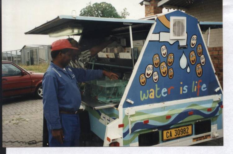 The first outreach vehicle took on the form of a trailer equipped to teach about the importance of water in a very arid country. This was sponsored by the Strategic Fuel Fund in 1998.