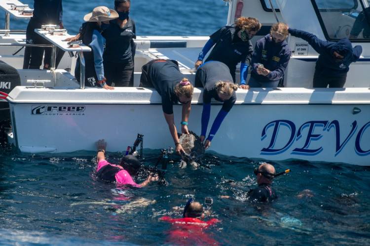 On Thursday, the Two Oceans Aquarium Education Foundation and the NSRI released some of their shelly friends back into the ocean so that they can begin their journey home in warmer waters.
