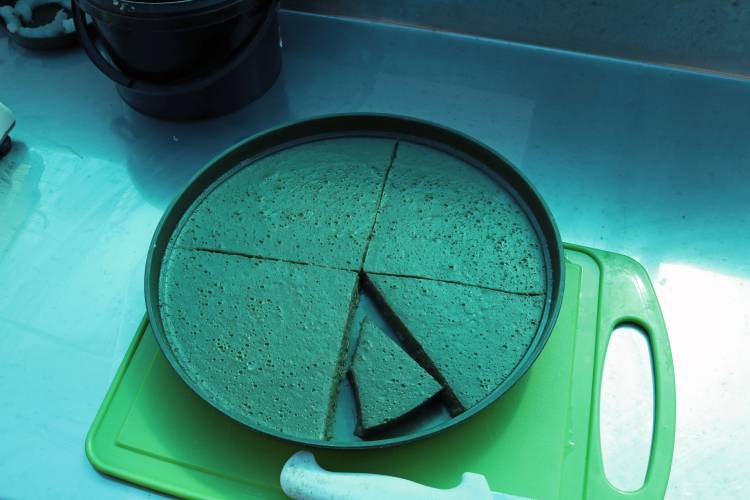 Thursdays: The rehab centre team gets busy preparing gel food for the coming week. This gel food is a gelatinous mixture for blended veggies, seaweed, vitamins and white mussels, specially formulated to contain everything a growing hatchling needs. To us humans, these look like trays of gooey, green tart, but the hatchlings will get to eat small bite-sized cubes.
