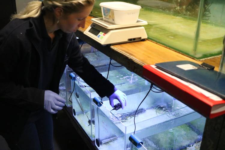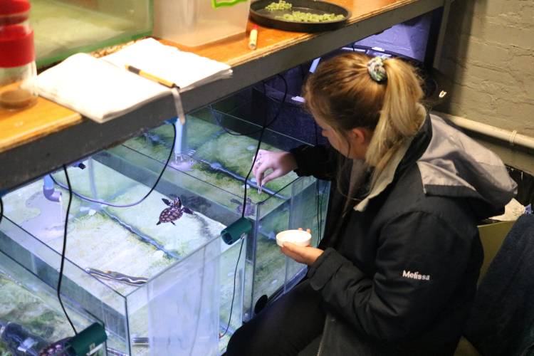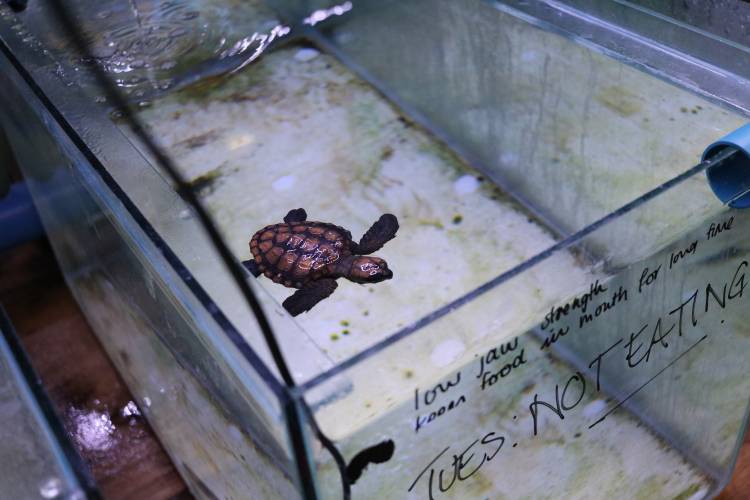 Before breakfast, those hatchlings who have additional health concerns get some special treatment. This can include tube feeding for the turtles that are losing weight, or oral medication, injections and topical ointments.