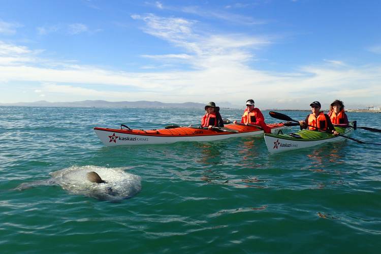 Kaskazi Kayaks are your originals in guided kayak tours in Mouille Point, Cape Town. In operation since 1995, we offer guided kayak tours along our coastline to enjoy spectacular views and often get spoilt by wildlife paying us a visit along the way.