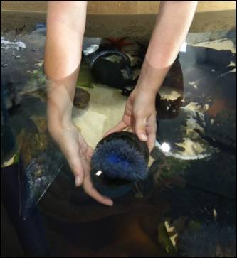 Upon learning how to interact with the various sea plants and animals at the Touch Pool and Microscope Exhibit, one suddenly becomes very grateful for all the preceding theory and tests. What seems like a small glass bowl with a few animals in it is actually a plethora of activity with so much that can be discussed. Of course, the relevant facts and information are so interesting and at times unexpected that talking about it becomes, well, great fun! And really, I doubt that I will ever tire of stroking the surprisingly rough skin of a sea star or using the microscope to explore the unthinkably small eggs of brine shrimp.
