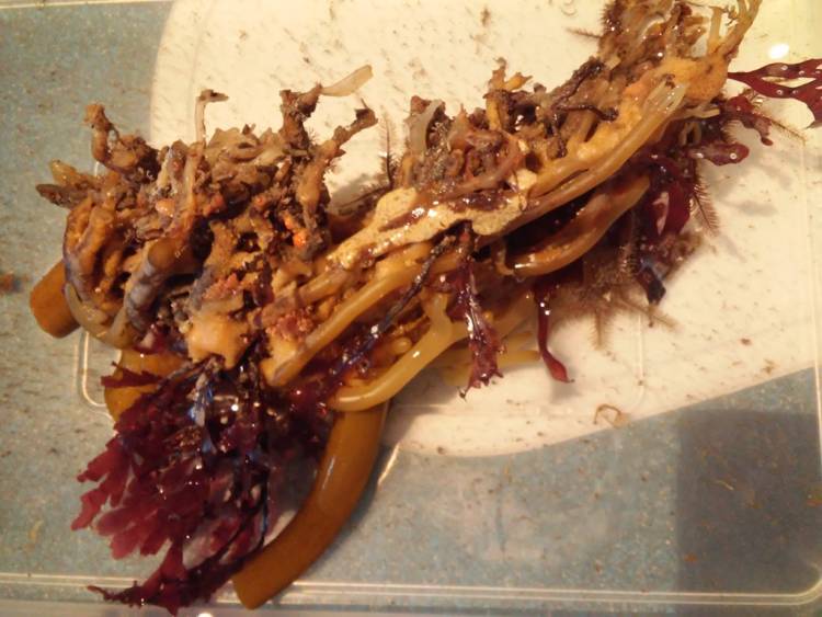 Can you even begin to guess how many animals inhabit this kelp holdfast? Loads. Sea anemones, feather stars, sea spiders, spiral worms, soft coral… Just to name a few!