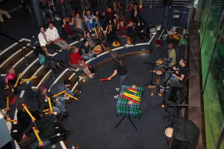 Open kicked off with Johnny and Julie Blundell along with Anele Viti from Rhythm Workshop getting the very enthusiastic audience participating in a group percussion session. Under the direction of Julie, everyone had great fun beating their musical tubes, while Johnny and Anele provided accompaniment on African drums, guitar and the hung drum. Unique musical flavours filled the air and with that, the scene was set for an evening of creativity, participation and enjoyment.