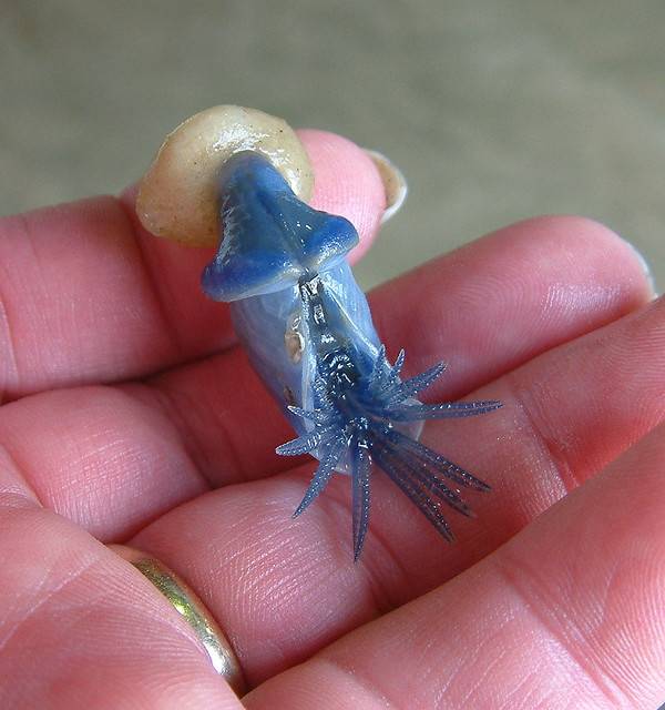 This barnacle hangs downwards from the water surface, and is held up by a self-made float (or buoy), drifting along with the ocean currents. According to Wikipedia, they prefer temperate seas like the Pacific and Atlantic Oceans, and have been seen floating from Japan to the Hawaiian Islands. They sometimes wash up on westerly and southerly beaches in the British Isles, and have been found further south in Europe.