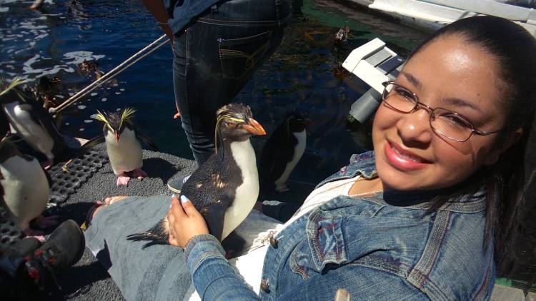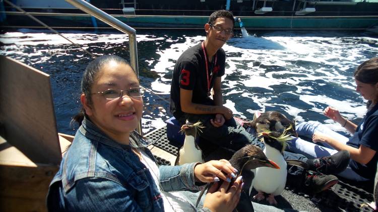 Samantha Naude was the lucky fish who won. On 21 October, she visited the Aquarium, along with her husband Gary Koopman, to meet our resident rockhopper penguins face-to-face.