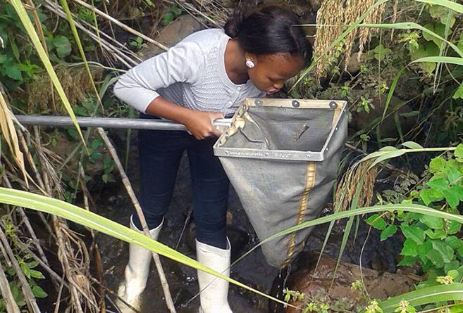 As part of SANBI’s Groen Sebenza programme, she was placed with the Duzi-Umngeni Conservation Trust (DUCT) in Pietermaritzburg where she was later employed as a Water Health Scientist. Some of her key responsibilities at DUCT, were to conduct water quality assessments, waterborne disease research and to help groups use and understand citizen science monitoring tools (MiniSASS) and other river health issues. It is working at DUCT that fuelled her passion for freshwater aquatic ecology and people even more.