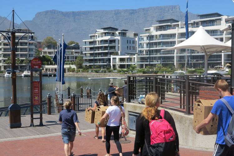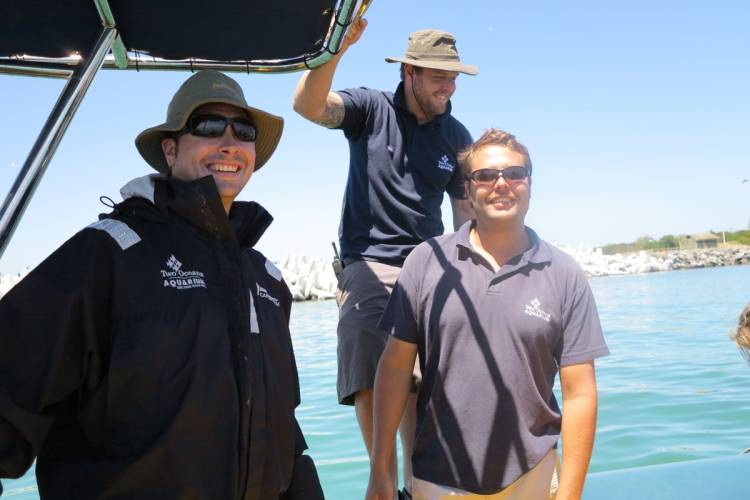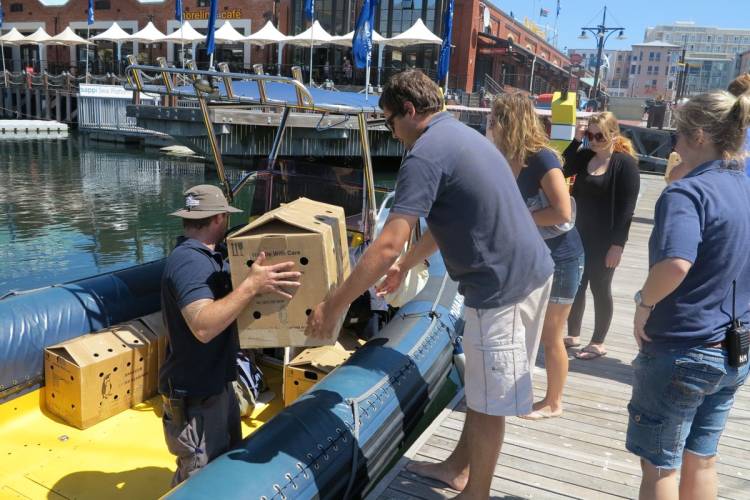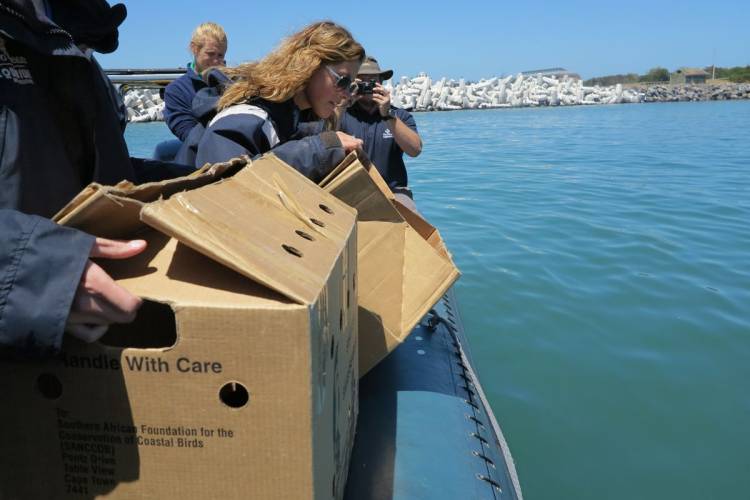 The Two Oceans Aquarium’s boat, Aquarium 1, was deployed on a warm, windstill day from right outside Shoreline Café. Anna, bird trainer at the Aquarium, and Aquarium collections team members Nic, Paul and Simon assisted the four SANCCOB volunteers.