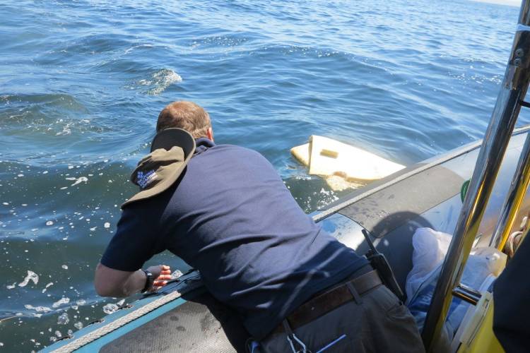There’s always time to do good … Skipper Paul stopped and turned the boat so that a large piece of mattress foam could be removed from the ocean.