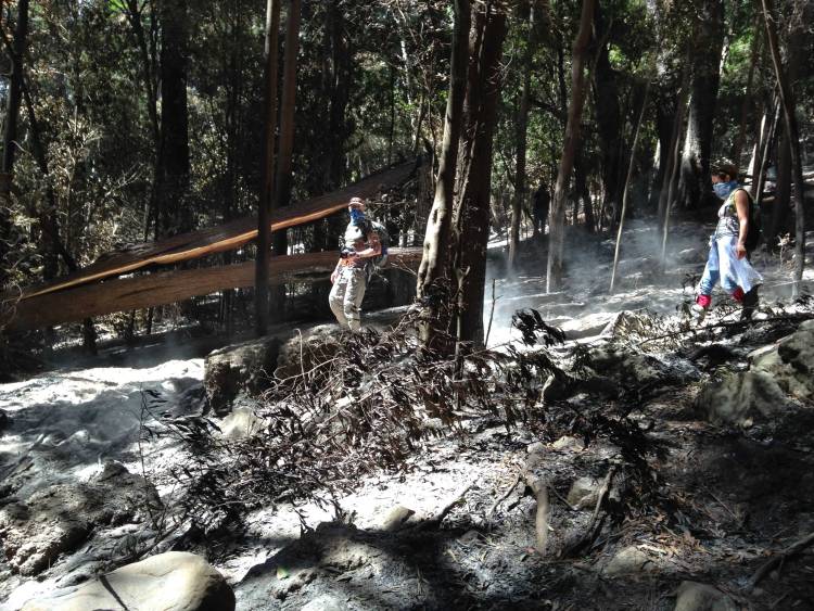 While we were walking around, chainsaws were constantly whining in the distance. Areas have to be secured, and unstable and unsafe trees have to be removed. Rain will bring more green shoots, but it also brings the possibility of rock- and mudslides. Please obey the authorities and do not venture where areas have been closed to the public. There are good reasons for these closures – your safety as well as giving nature time to recover.