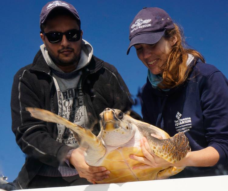 Teamwork makes the dream work (cheesy, but true)! The Two Oceans Aquarium Foundation, uShaka Sea World and Bayworld (with assistance from East London Aquarium) teamed up for the release of three rehabilitated juvenile loggerhead turtles. Due to adverse weather conditions, we couldn't release all three turtles at the same, but over the past week, all three of these endangered rescues were successfully returned to the ocean. Swim well Pan, Donny and Caddy!
