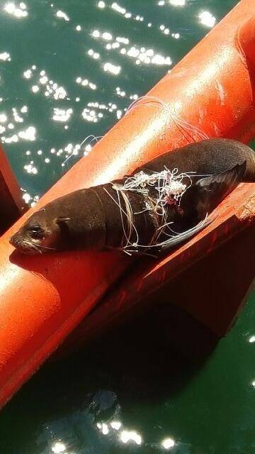 The team successfully managed to free the seal of all the nooses, which included box bands, long-line, tuna rope, an o-ring and a piece of foul-weather gear (looking a bit like a peak cap).