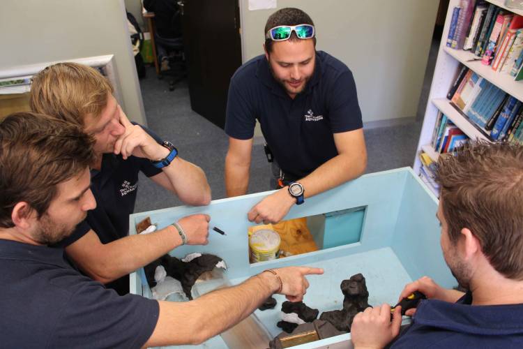 While the building is going on next door, on our side plans are being made and designs are being finalised. Here the guys are looking at the model of the new exhibit and discussing the proposed rockwork. It takes a lot of precision planning.