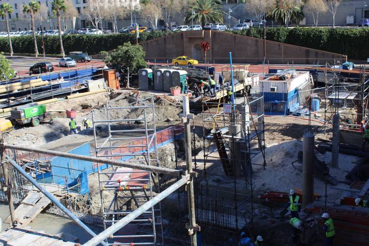 Building continues around the exhibit