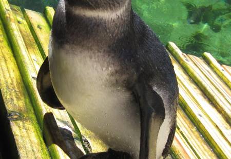 Ayoba is a handsome male penguin that is very affectionate and enjoys being the centre of attention. He can be a very inquisitive penguin, always keeping staff guessing as to what his next move is going to be. He is quiet, but curious, and loves taking walks around the Aquarium, shadowing staff and meeting new people and animals.