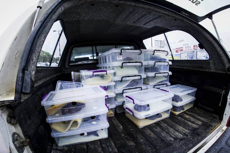 The small loggerhead turtles that were released are part of the group of 215 juveniles that washed up on Western Cape beaches between March and May this year. More than 150 came from the Cape Agulhas region. When they arrived at the Aquarium, their average weight was 66g. Upon release, this average had increased to 668g. The turtles all underwent rehabilitation that included veterinary care, X-rays and hand-feeding.