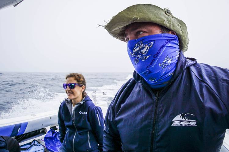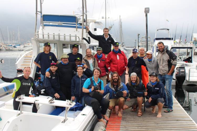 Two Oceans Aquarium Curator Maryke Musson, Senior Aquarists Kevin Spiby and Nicholas Nicolle, Aquarist Pinda Dlodlo, Digital Content Coordinator Ingrid Sinclair and Assistant Communications and Sustainability Manager Renée Leeuwner were joined on the day by Chris Bertish (a legendary big wave surfer, author, motivational speaker and Two Oceans Aquarium ambassador), photographers Jacques Marais (sports photographer, long-standing Aquarium supporter and sponsored by Buff®), Steve Benjamin of Animal Ocean (underwater speciality and a fan of ours) and Jean Tresfon (known for his aerial photographs of the Cape Peninsula coastline), marine biologist-cum-filmmaker Otto Whitehead, radio DJ and extreme-sports commentator Kai Linder, NSRI CEO Dr Cleeve Robertson, Barry Stringer of Reef Wetsuits (a long-time Two Oceans Aquarium partner), Sean Amor of Hooked on Africa, and Homebrew Films’ Chris Mason and George Kirkinis.