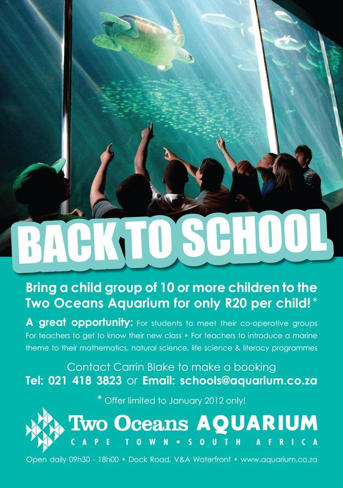 The Two Oceans Aquarium’s Environmental Education Centre is offering a great back-to-school opportunity for teachers and educators. If you book a child group of 10 or more learners to the Aquarium for the month of January, you’ll pay just R20 per child.