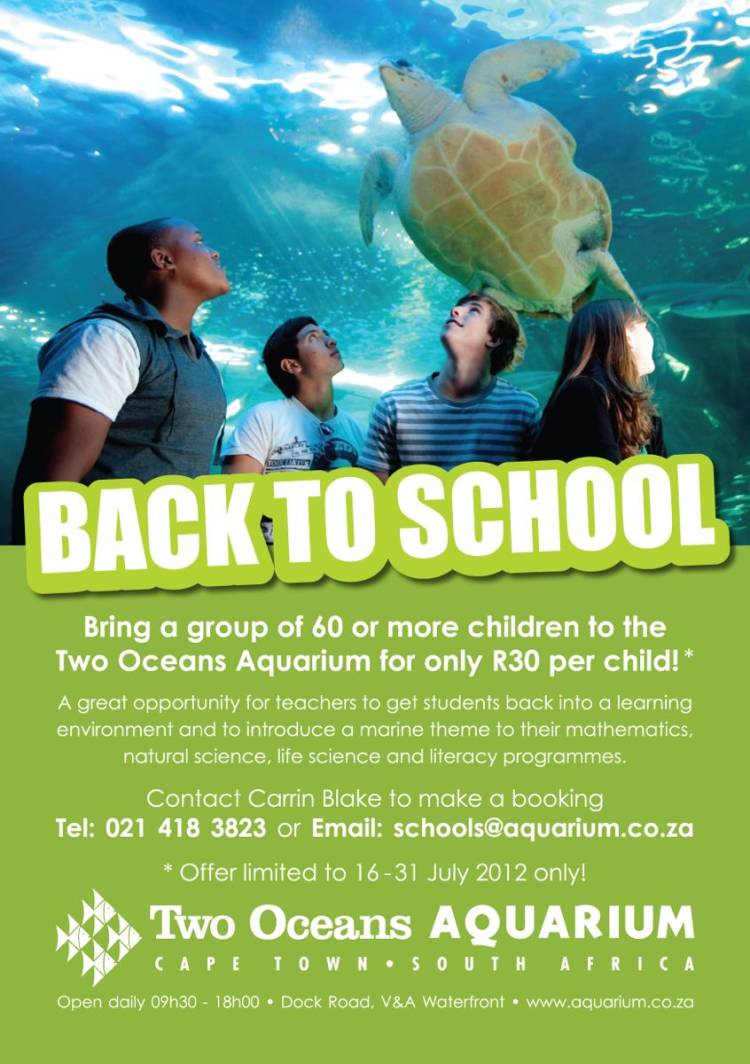 Our Environmental Education Centre is once again offering a back-to-school discount for teachers and educators to “sea in” the second half of 2012. Book a group of 60 or more children between 16 and 31 July and pay just R30 per learner!