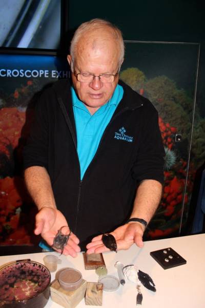 By seeing these animals close-up, and hearing how they fit into the big picture, Douw hopes that visitors will think differently about the ocean. “Many of our visitors have no idea that an anemone is actually an animal, or have never seen a live sea urchin, or even thought about how barnacles feed,” he explains. “What’s nice about coming here is getting to see everything close-up under the microscope at this exhibit, and then walking across to the Touch Pool, where they can also touch and feel ocean life too.”