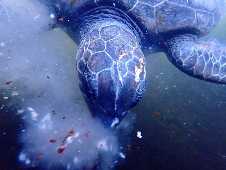 When rescued in 2014, Bob was in a bad state - intestines full of plastic pollution, severe plastron (the bottom shell) damage and a bad infection. Unfortunately, this all led to a brain infection, which caused damage that Bob is still dealing with to this day.