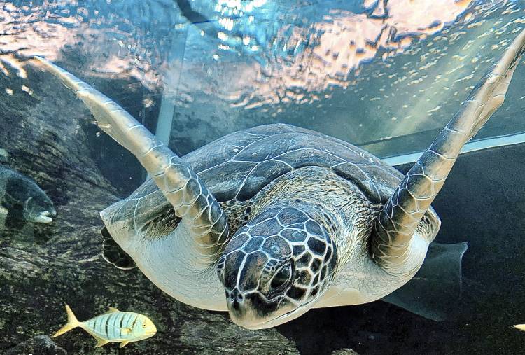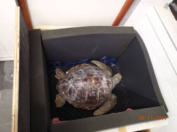 Bob arrived into our care on 6 November 2014 as an injured sub-adult green turtle (Chelonia mydas) and was delivered into the hands of the Two Oceans Aquarium team weighing just 16.6kg (in contrast to their now 85.6kg strong)!