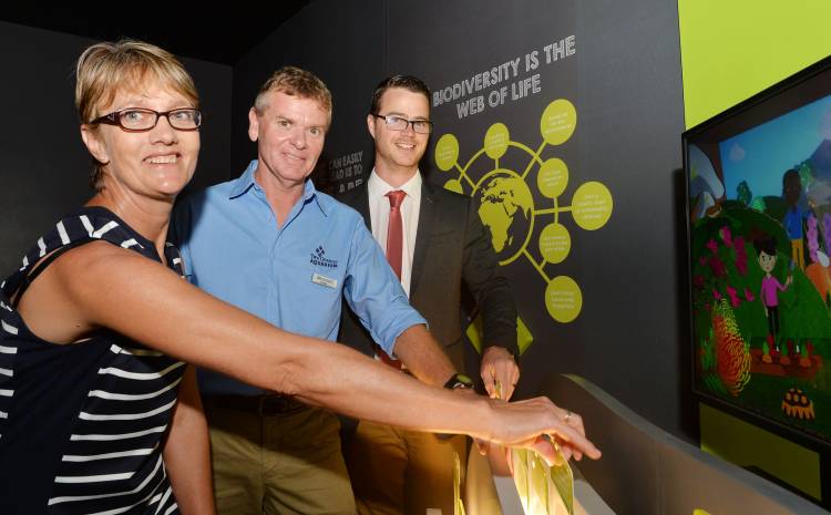 The biodiversity exhibit shows visitors how their actions impact on an ecosystem, specifically the Cape Floral Region. Some of the negative issues addressed include illegal dumping and invasive species. Positive actions include composting, planting indigenous species, and avoiding toads and frogs on roads.