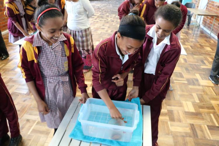 Oceans in Motion is an environmental education social responsibility initiative funded by the Two Oceans Aquarium, with the goal of reaching learners in schools and communities where the opportunity to visit the Aquarium or learn about the ocean first-hand may not arise. Working with the Western Cape Department of Education's district managers, Oceans in Motion is able to identify schools that would benefit from this programme and arrange visits - aiming to reach 200 children every school day, and able to cater for all curriculums from grade R to matric.