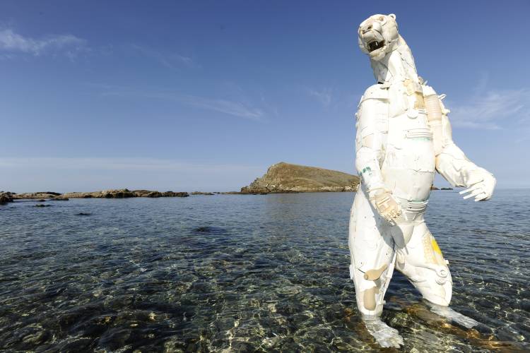 “These figures are a playful response to a serious issue: the perilous state of the ocean and our marine life. While I admire activists and leaders who address the problem, my own voice is that of an artist. The contrast between the humanity of the figures and the plastic materials they are made of suggests that we are part of and responsible for the problem we have created.”