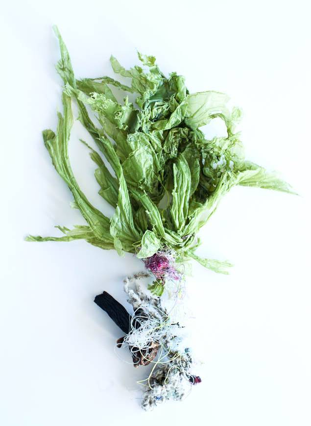 “In early 2016, the prevailing southeaster wind on the False Bay coast in Cape Town, South Africa, caused some significant ocean upwelling events," says Gwendolyn. "A large amount of plastic was brought onshore, tangled in the seaweed's long strands. Within the plastic detritus were strange, not totally natural oceanic objects. On the beach that summer was evidence that plastic waste in the ocean is is undergoing an integrative evolution, becoming bound with natural forms by the ocean's forces. Ocean life forms have evolved and developed in response to the currents, the ebb and flows and the movement of water. These same forces clearly are reconfiguring nature and plastic into hybrid objects as a third form.”