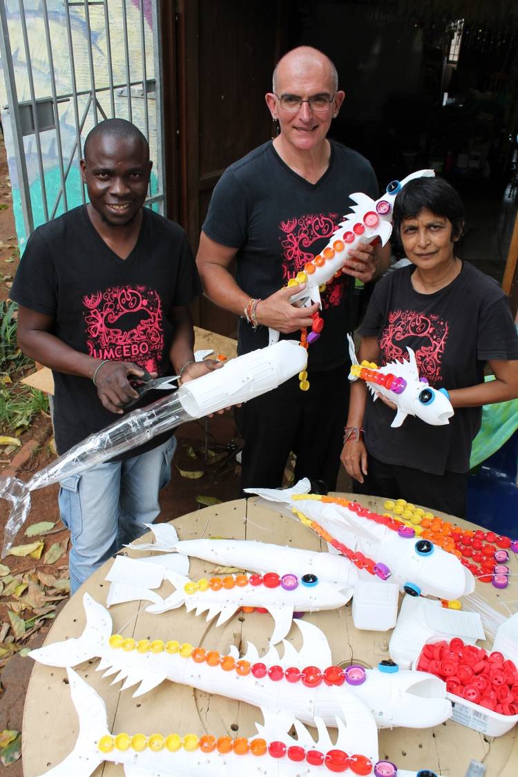 “We are playing to the paradox that the fish are made completely from recycled and found materials, using the very objects which play a role in destroying our marine biodiversity to send out a message of the importance of recycling and reusing,” said Umcebo’s Robin Opperman.