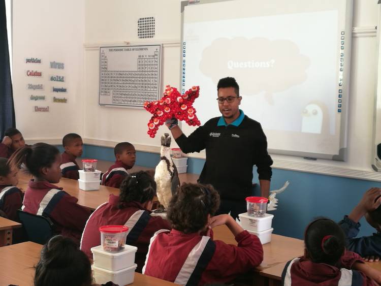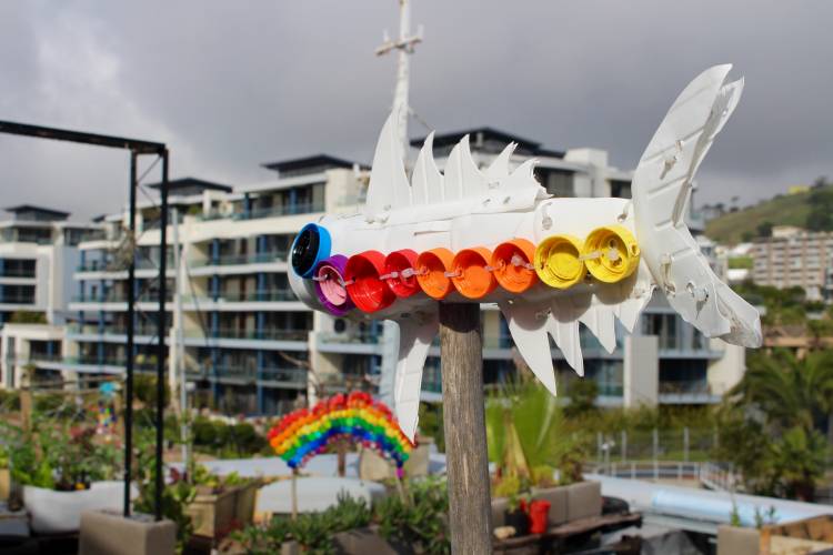 Some of Umbeco’s creations can now be seen at the Aquarium’s rooftop vegetable garden, where the fish have added wonderful colour to the space. We also use the sea star made from bottletops on our educational outreach trips.