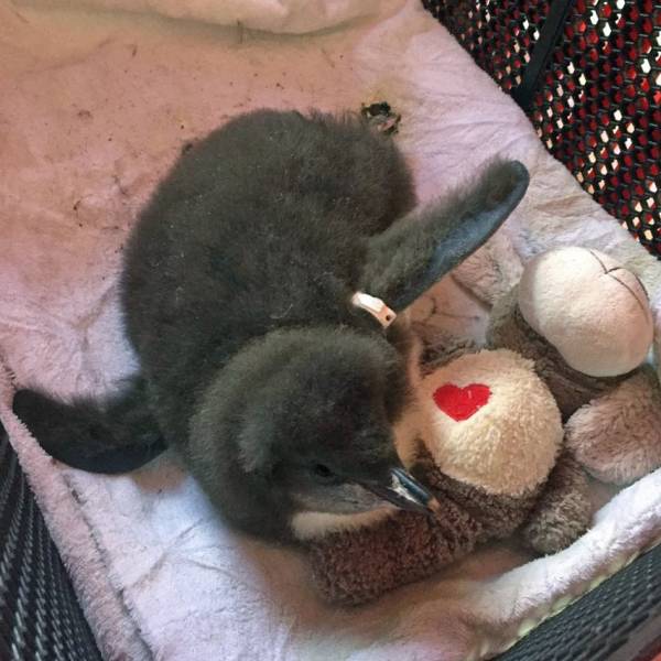 At this point the tiny rockhopper did not have a name. Rockhopper penguins have orange beaks, but as chicks their beaks have yellow tips, only changing colour when they get older. As this was the first rockhopper chick SANCCOB had ever worked with, the yellow beak seemed like a novelty compared to the black beaks of the African penguins they are more familiar with. They nicknamed her "Custard".