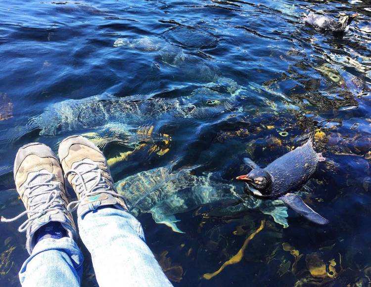 Rockhopper penguins usually walk or hop but this little one gallops and leaps - her enthusiasm for all things is clear. Even her swimming is just a teeny little bit erratic.