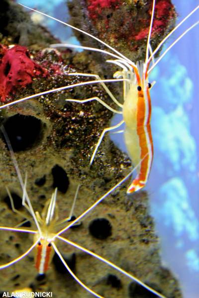 The brightly coloured cleaner shrimp is the perfect creature in nearly any aquarium – they help with the natural filtration process, break down debris, and help clean their tank mates, coral and rocks. In the wild, the cleaner shrimp has even been observed crawling into the open mouth of a willing diver to give them a quick clean!