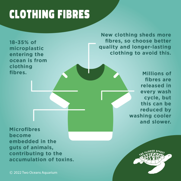 Sources: 1) 18-35% of microplastic entering the ocean is from clothing fibres. 2) New clothing sheds more fibres. 3) Washing cooler and slower reduces the amount of fibres. 4) Microfibres contribute to the accumulation of toxins.
