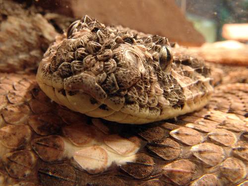 The puff adder, a chubby snake with gorgeous layered patterning, is one of the most prominent snake species in Africa. Found throughout most of the continent except central rainforests and the Sahara desert, it is also one of Africa’s deadliest snakes, reportedly responsible for the most cases of serious snakebites in this country.