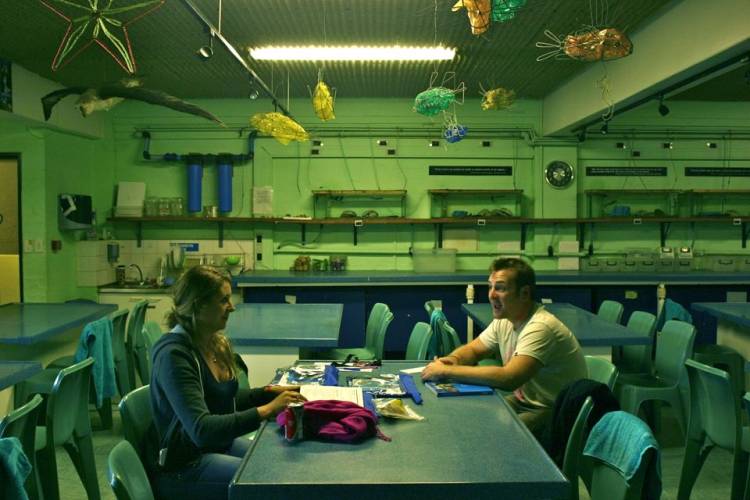 On Tuesday night, my great friend Brendan and I pitched up at the Aquarium’s awesome Environmental Education Centre Discovery Centre. Brendan was transfixed by the shy sharks, anemones, lobsters and starfish that live in tanks in the Discovery Centre – this is what the Aquarium means by hands-on learning! Joined by Francesca, a German intern who is spending some time at the Aquarium, we sat down with Iain to start the theory leg of the two-week Open Water 1 course.
