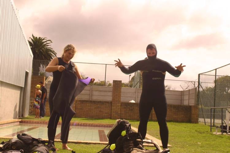 So what’s the next step for a prospective PADI Open Water scuba diver? The motley crew – Brendan, Franzisca and I – awoke early on a Saturday morning and headed out to Wynberg Military Base in Cape Town where Iain Robertson would introduce us to underwater shenanigans and the equipment that makes these shenanigans possible in the first place.