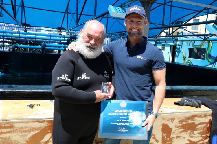 Last week, Iain received a surprise visit from Anders Heegaard, PADI Regional Manager for South Africa and Sub-Saharan Africa. Anders had something to present to Iain - recognition for his long and outstanding PADI professional membership. Iain is one of only five South Africans to ever hold this achievement.