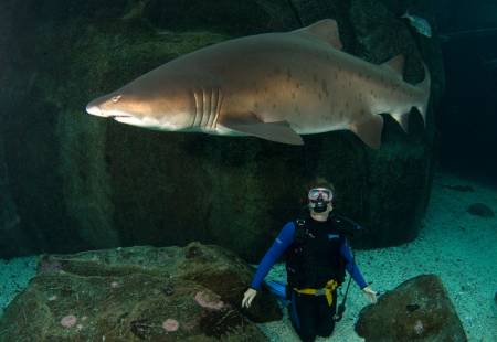 Divemaster Iain Robertson has been a cornerstone of the Two Oceans Aquarium's scuba diving experience for many years - starting as a behind-the-scenes volunteer more than 20 years ago and eventually moving in permanently as our resident scuba diving instructor. Iain's Scuba School has long been one of Cape Town's premier dive instruction academies, Iain himself being a professional PADI instructor for over 25 years.