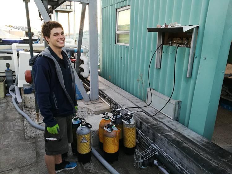 The UCT Underwater Club made our jobs very easy. Aquarist, turtle whisperer and talking diver Simon Leigh refilled cylinders until late into the night (around 11pm), and this long-suffering writer made it to bed (in her curator’s office) at about 2am. When we awoke from our fitful slumber (did you know that the seagulls at the V&A Waterfront never sleep?!) the intrepid divers were still going at it with smiles on their faces. Simon’s refill duties commenced at 6am.