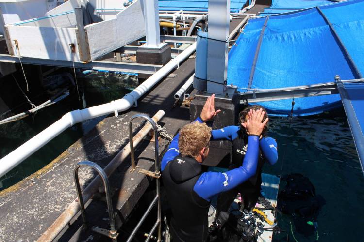 Shannon and Tanika spend a lot of time in the ocean surfing, doing what they love. They decided to meet some of the animals that call this incredible expanse of water their home, up close and personal, with a dive at the Aquarium. Neither of them were qualified divers, so they did a Discover Scuba course with Iain Robertson of Iain’s Scuba School. After that, it was off to the I&J Predator Exhibit!