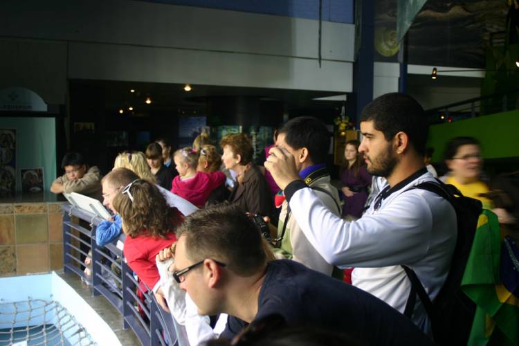 Yesterday, the Aquarium was filled with lots of enthusiastic England football supporters ahead of their squad’s match against Algeria at Cape Town Stadium. It’s all part of the 2010 FIFA World Cup™, which has taken the country by storm! But if you think the V&A Waterfront is too busy to visit during this time, think again – if you get here early enough (before 3pm or so), you’ll find plenty of parking and lots of calm and serenity around our exhibits. Here are some images of yesterday’s crowds. Photographs by Ingrid Sinclair.