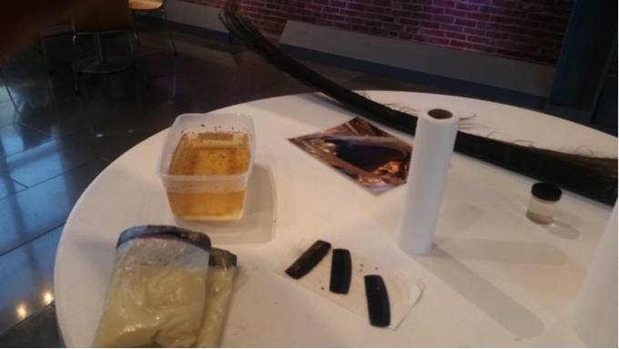 The New Bedford Whaling Museum exhibits the rich whaling and art history of the town itself. Volunteers come in once a week to run their education programme. Learners are divided into groups and guided by the volunteers to various hands-on education stations, including one where learners can use a blubber glove and a bucket of ice to learn how blubber protects the animal in cold environments! They use a basin of water, household cooking spices and a hair comb to illustrate how baleen plates work.