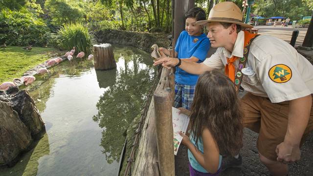 Then I learnt about the Wilderness Explorers programme (WE), through which visitors complete challenges and earn adventure badges as they work their way around the park. This is what they refer to as “stealth education” – while visitors are enjoying the park, the WE “cast members” initiate conversations with guests using Wilderness Explorers badges. The guests are then encouraged to answer a question before receiving their next badge. Education staff are placed at all the walking trails: these are frontline cast members who have a particular interest in an animal or the environment.