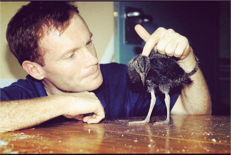 The first chick, Tony, was handed to Sarah Stark - a Pringle Bay resident with a passion for rehabilitating animals. Tony was reared on Sarah's balcony, overlooking the sea; he was hand-fed by her using a sock-puppet decorated like an oystercatcher and, when he was old enough, she took him to the beach to walk in the swells and scavenge for food. Tony would linger with the wild oystercatchers he encountered, but would always fly back to Sarah's balcony (even if she sneaked away).